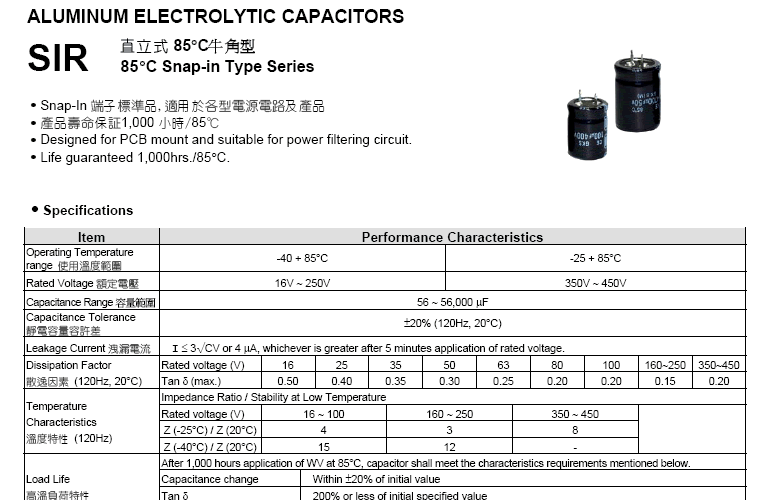 «直立式105°C牛角型品 SIH系列