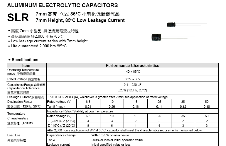 105°C 小型化 高度7mm 標(biāo)準(zhǔn)品 SHR系列»