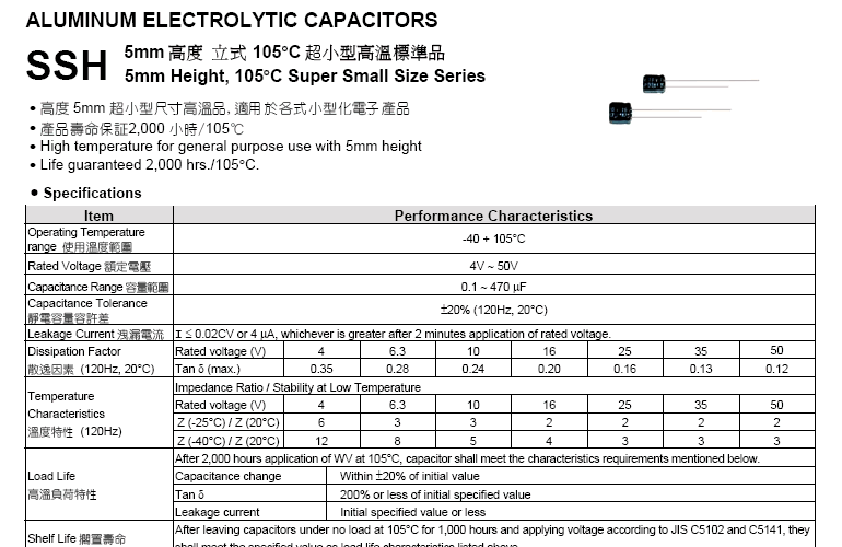 «85°C 小型化 高度5mm 低漏電 SSL系列