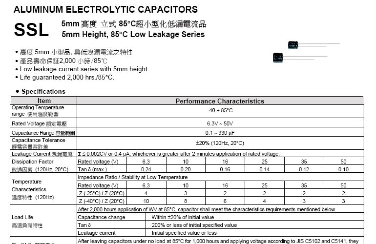 105°C 小型化 高度5mm 標準品 SSH系列»