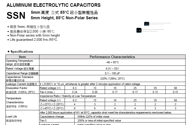 85°C 小型化 高度5mm 低漏電 SSL系列»