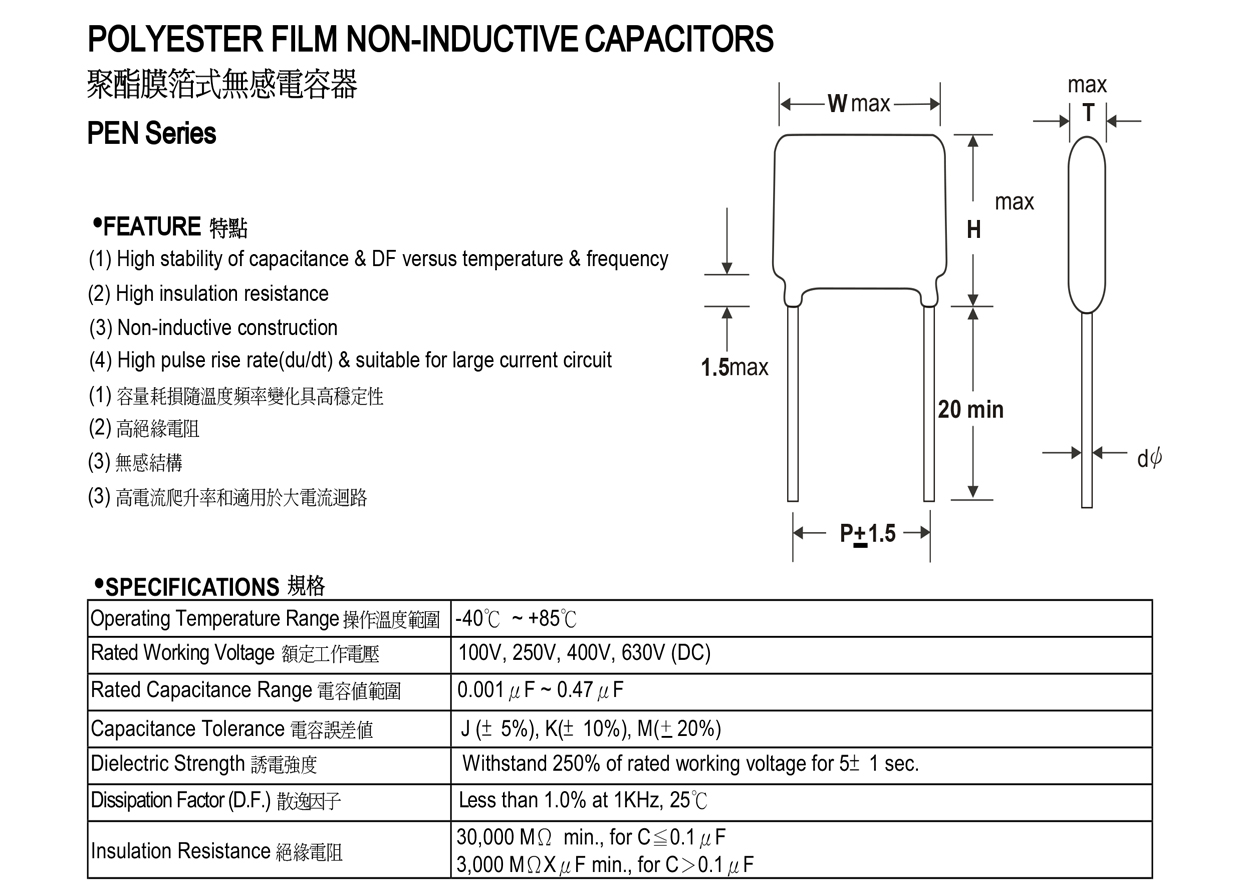 聚酯膜箔式有感電容器PEI 系列»