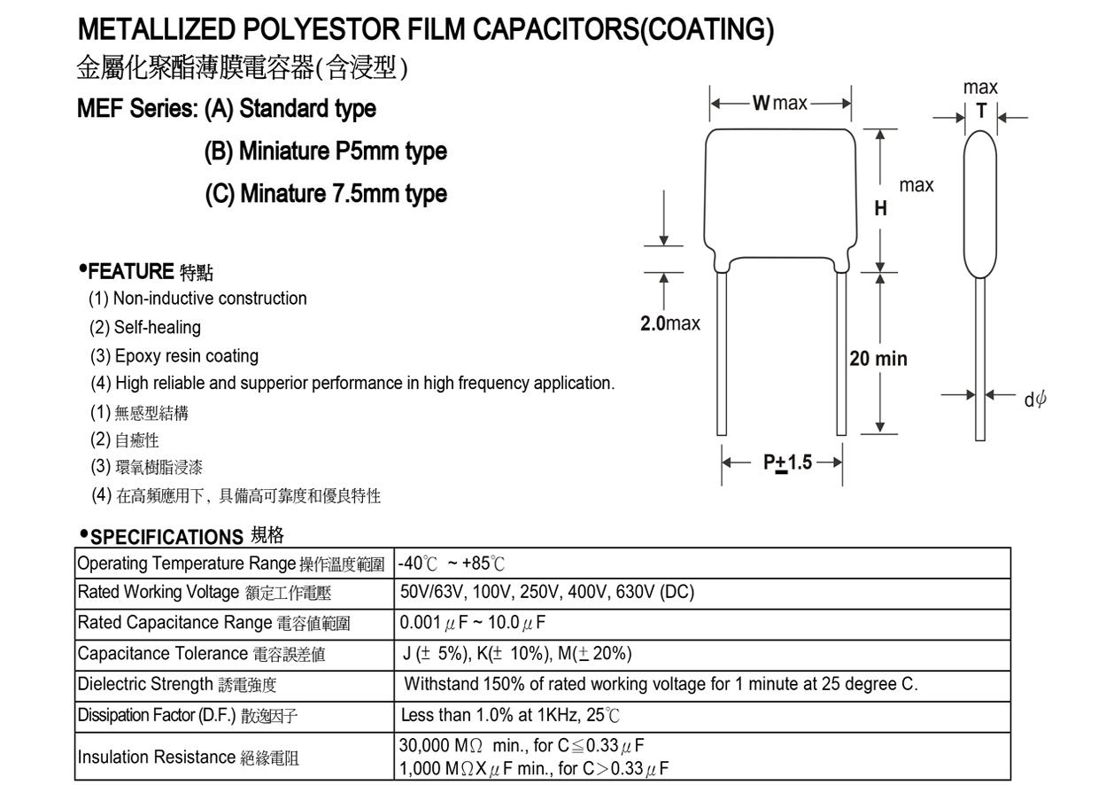 «金屬化聚酯薄膜電容器(小盒型) MEB系列