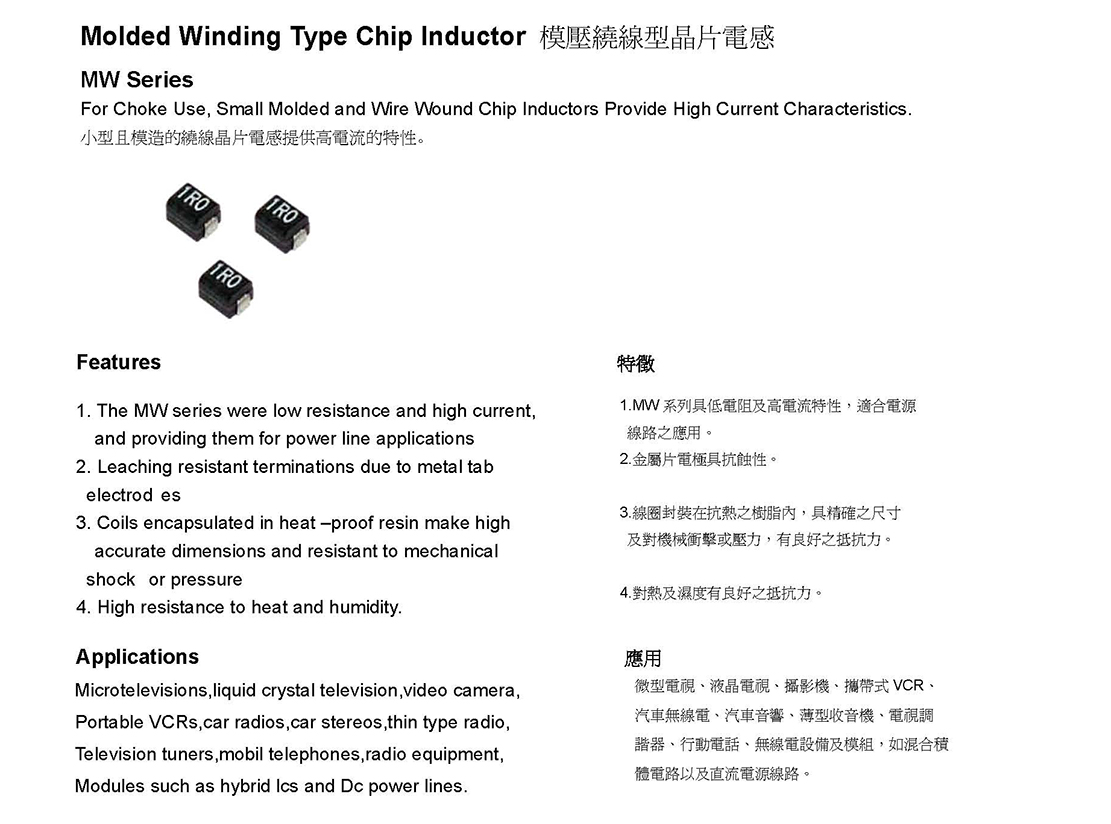 陶瓷繞線貼片電感 CW系列»